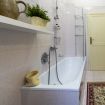 Nell'anticamera e nella camera degli ospiti, arredata con un divano letto ad una piazza e mezzo ed un armadio a due ante, si possono ancora apprezzare i pavimenti originali finemente decorati. Le preziose porte in legno intarsiato sono rifinite artigianalmente in piombo e vetro lavorato a mano.
