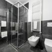 Entrando nella zona notte si trova subito a sinistra un bagno con piccolo balconcino dotato di lavandino, bidet e wc.