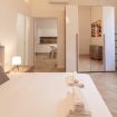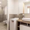 Entrando nella zona notte sulla destra si trova un bagno con una grande doccia, lavatrice, lavandino e bidet. Si accede poi alla camera da letto, molto spaziosa, dove abbiamo un letto matrimoniale ed un armadio a quattro ante.