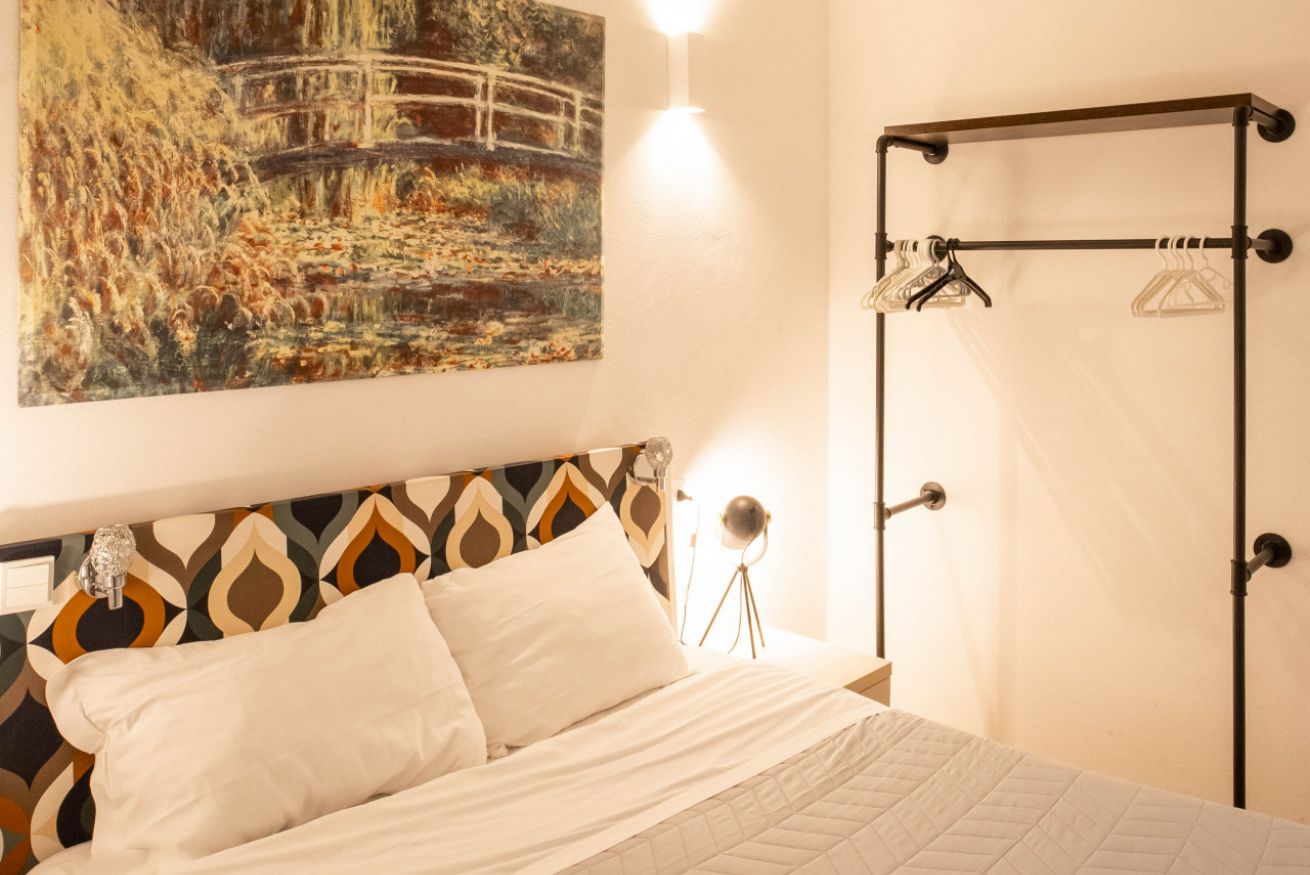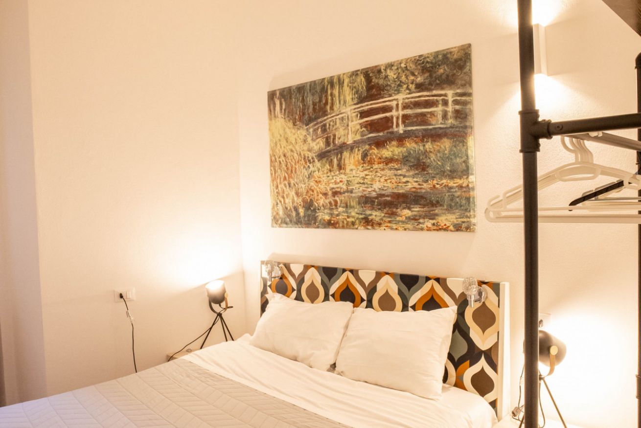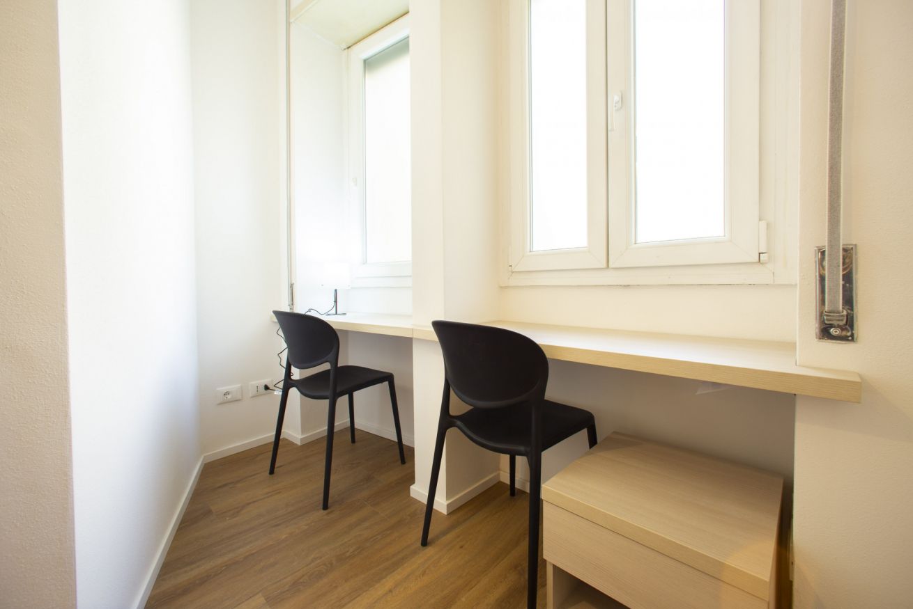 La seconda camera ha due letti a sommier 90x200 che possono unirsi a formare uno spazioso letto King Size o possono essere tenuti separati. Qui si trova anche un armadio a due ante, un pouf letto a piazza singola e due scrivanie davanti alle finestre.