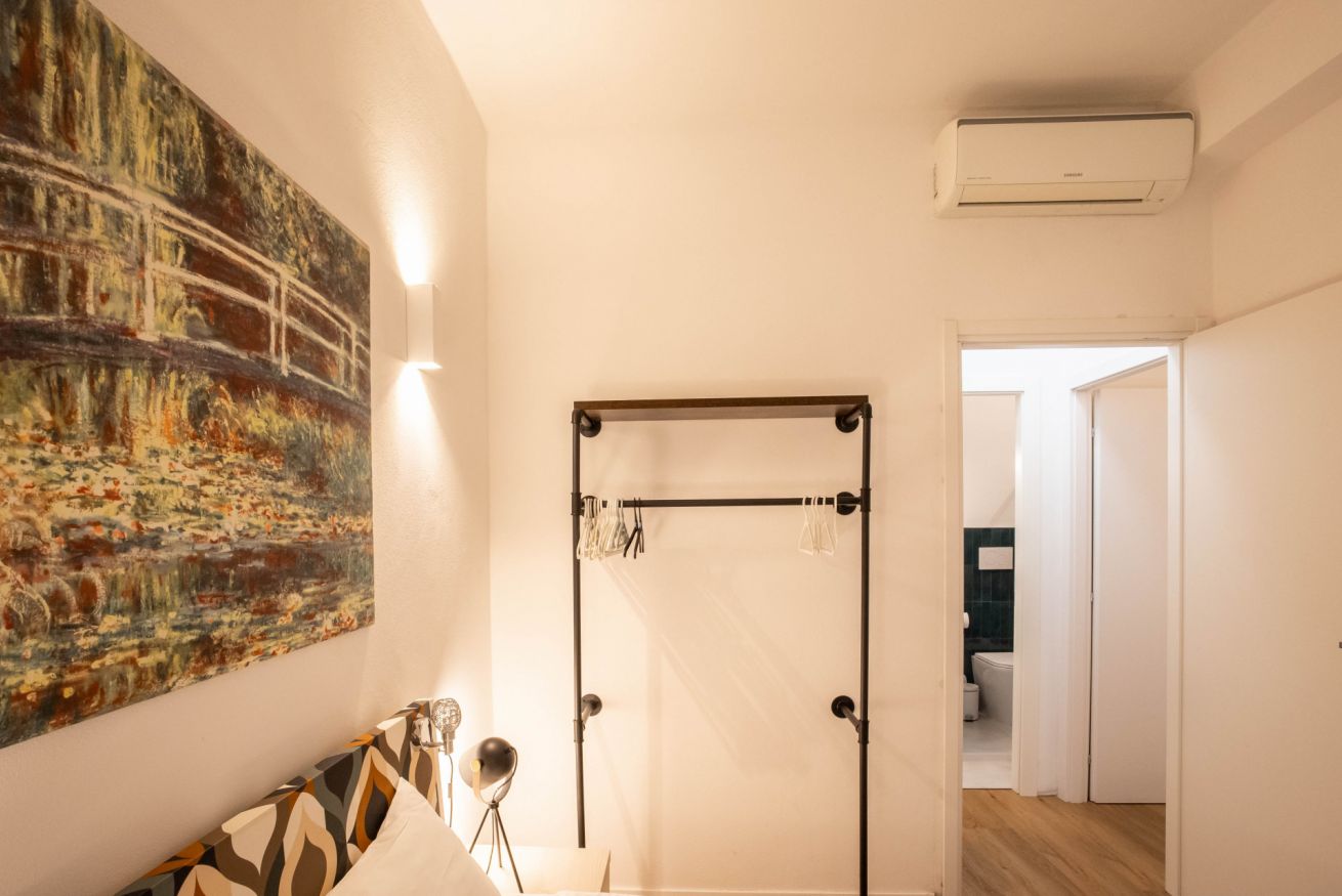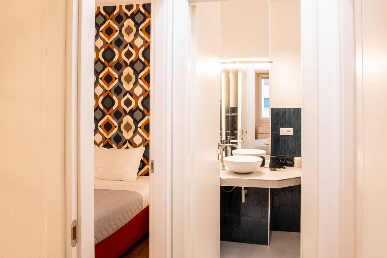 Una porta conduce al disimpegno della zona notte, dove si trovano le altre due camere e il bagno.