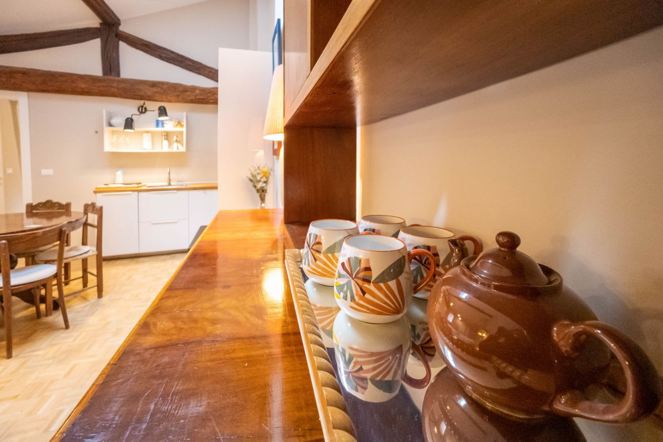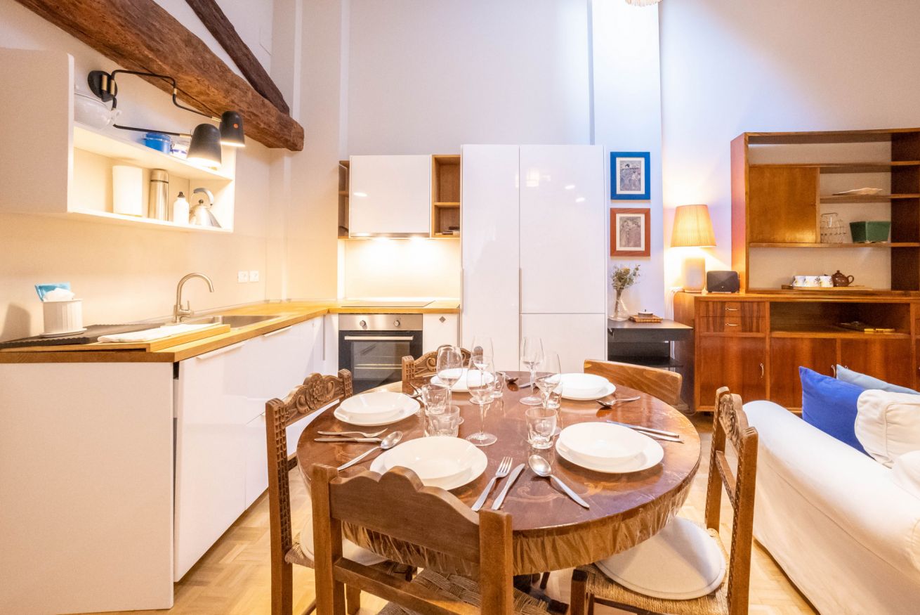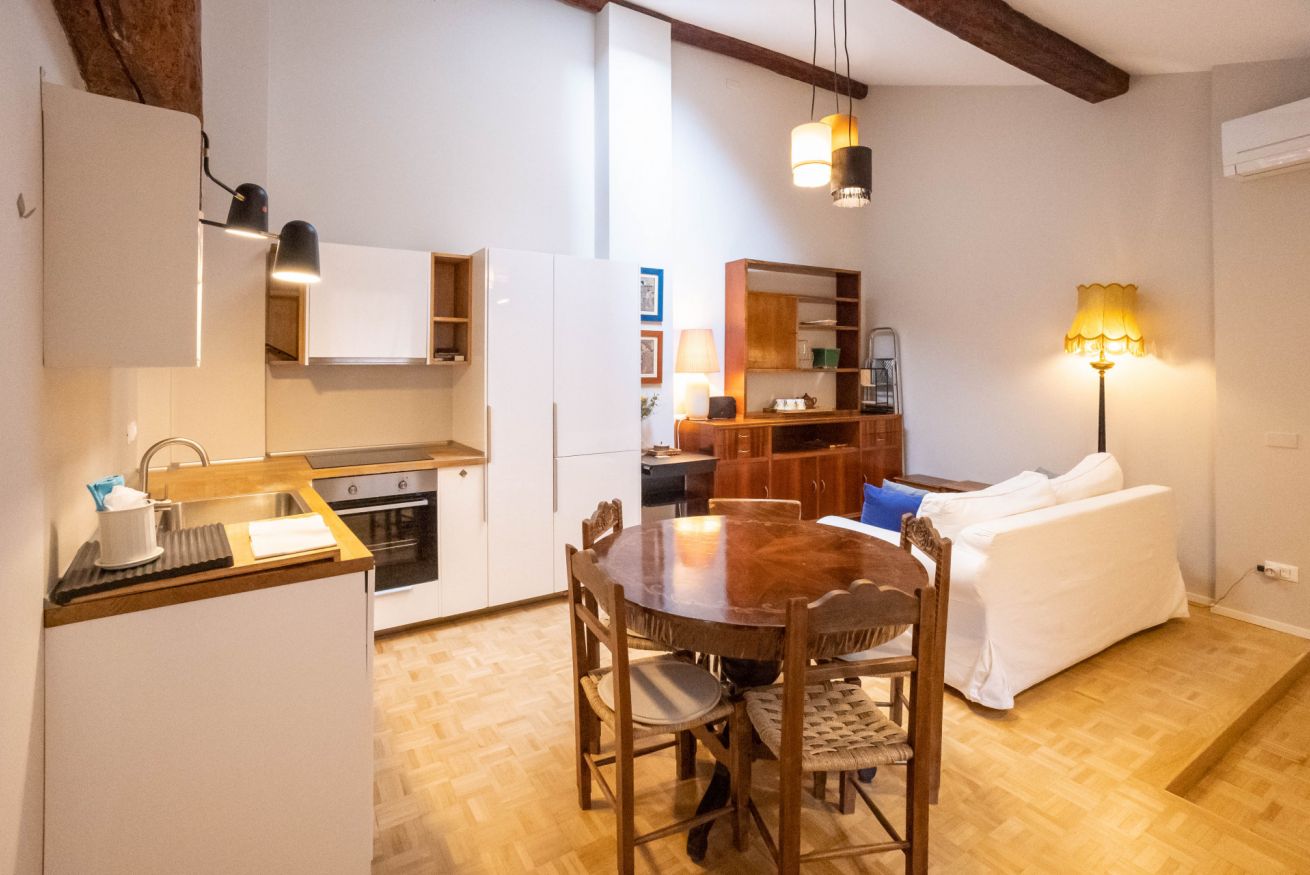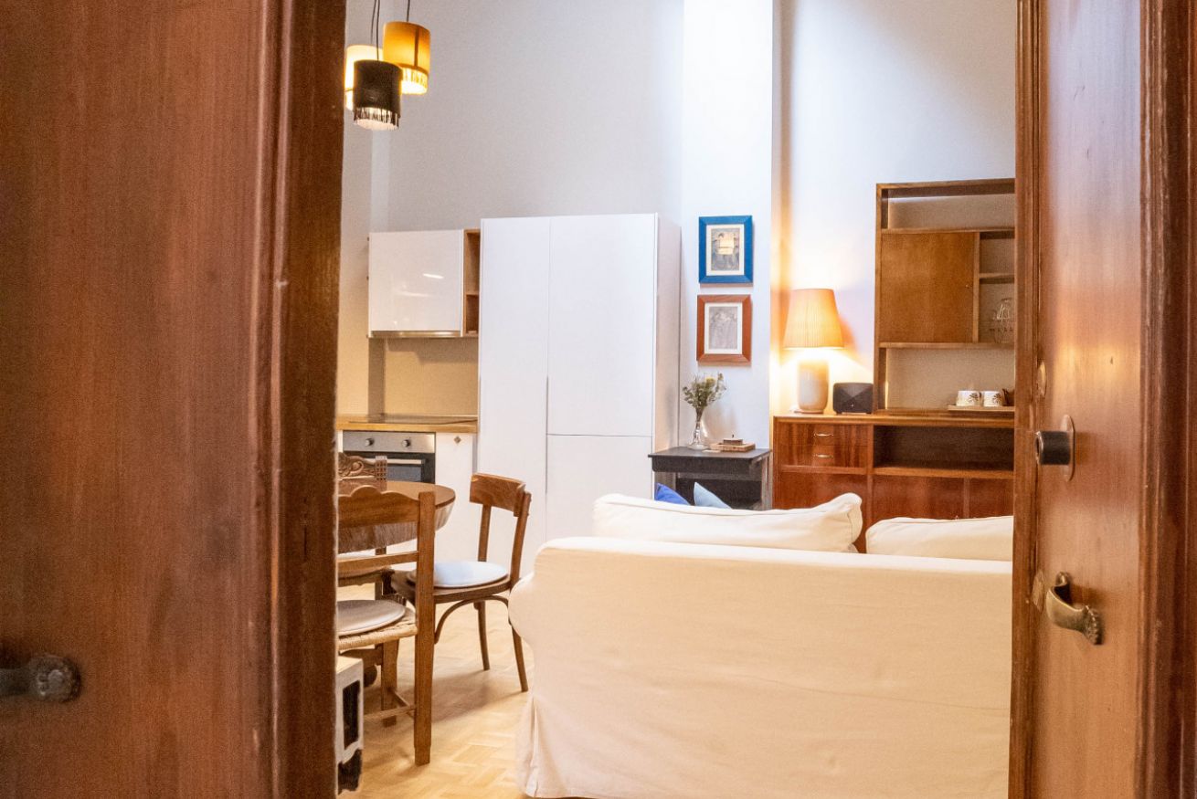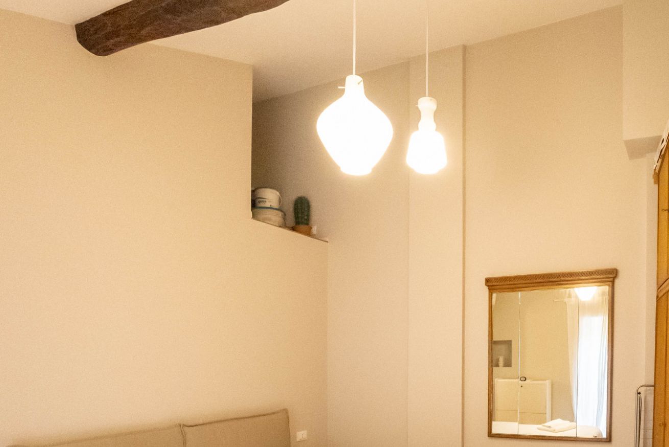 Nella vivace via Mascarella, aprendo il portone di questo stabile ci si lascia alle spalle il brulicare di vita della città e si accede a un tranquillo e grazioso cortile interno. Qui affaccia questo bilocale elegante e tranquillo: i volumi ampi e il soffitto alto gli conferiscono un notevole senso di spaziosità e le ampie finestre e il lucernaio a soffitto illuminano generosamente gli spazi. Si entra in casa dalla zona giorno dove elementi di modernariato creano un piacevole contrasto con una cucina moderna e funzionale, completa di forno, piano a induzione, frigorifero e lavastoviglie. Completa il soggiorno un divano letto. La camera da letto è anch'essa spaziosa e ben illuminata dalla porta finestra che conduce al balcone. Qui un ampio armadio guardaroba è collocato di fronte al letto matrimoniale. Dalla camera si accede all'antibagno, finestrato, dove oltre al lavandino è posizionata in una nicchia la lavatrice. Proseguendo si accede alla zona sanitari e doccia, anche quest'ultima di dimensioni generose.