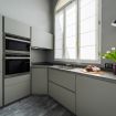 Da qui si accede ad una moderna cucina, spaziosa e luminosa, con piano a induzione, forno, forno a microonde, frigorifero, congelatore e lavastoviglie.