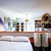 All'interno è invece una sinfonia di carte da parati colorate e pezzi vintage. L'atmosfera è quella dello studio di registrazione ma con tutti i comfort di un moderno appartamento.