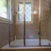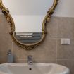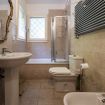 Il bagno è realizzato con candide ceramiche, dispone di una vasca da bagno con para-spruzzi.