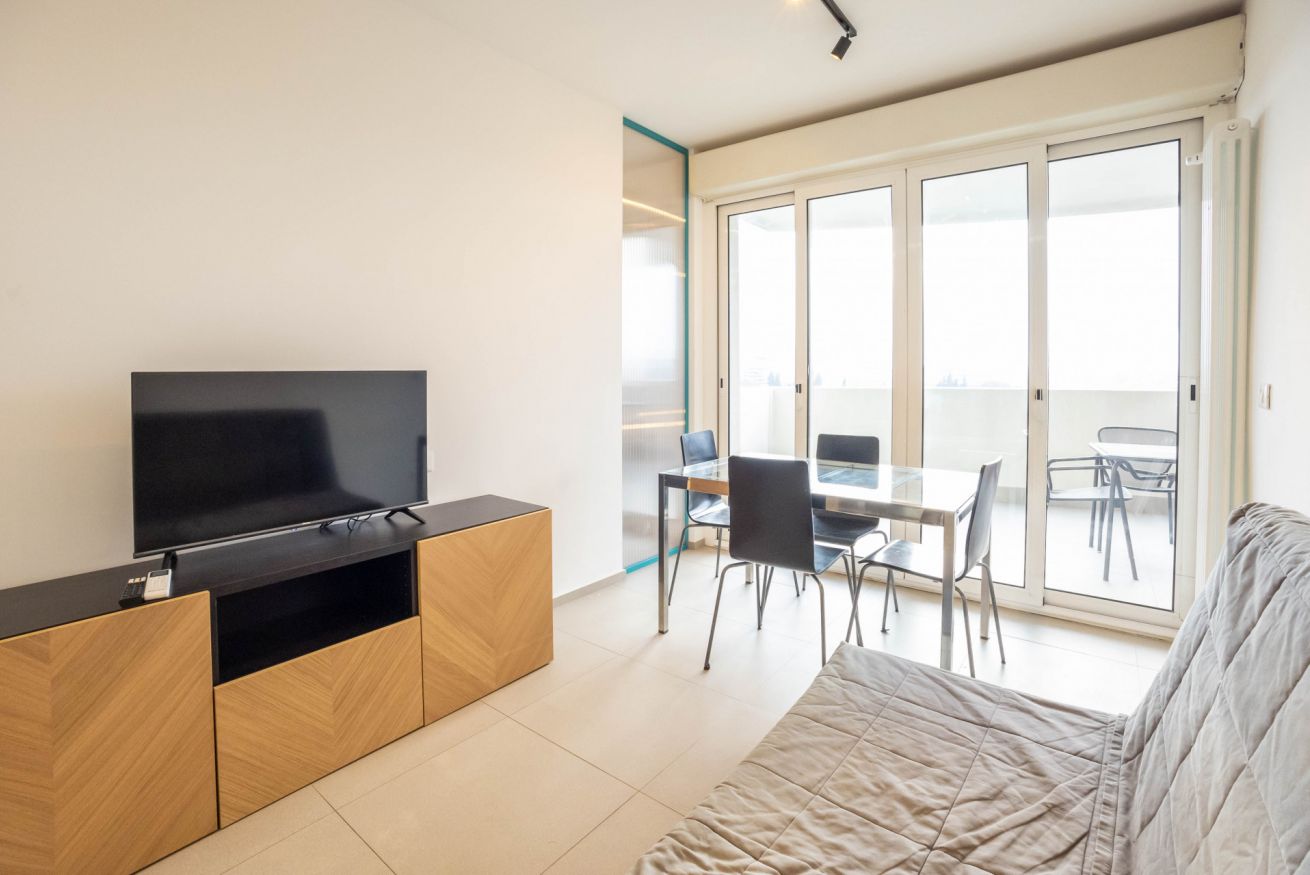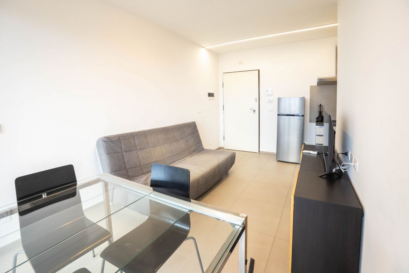 Moderno bilocale con vista sulla città.
