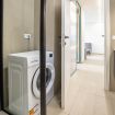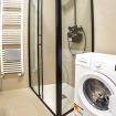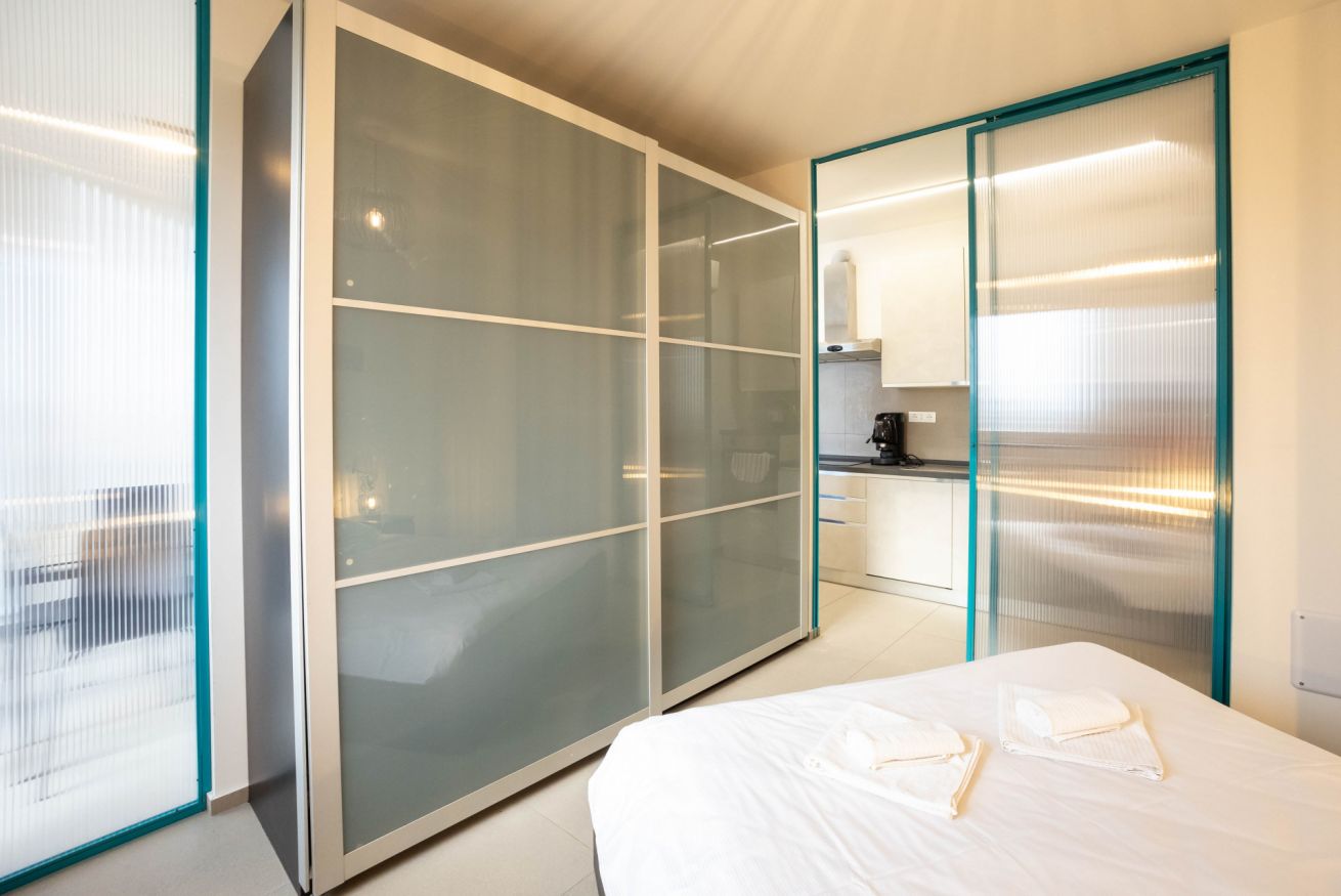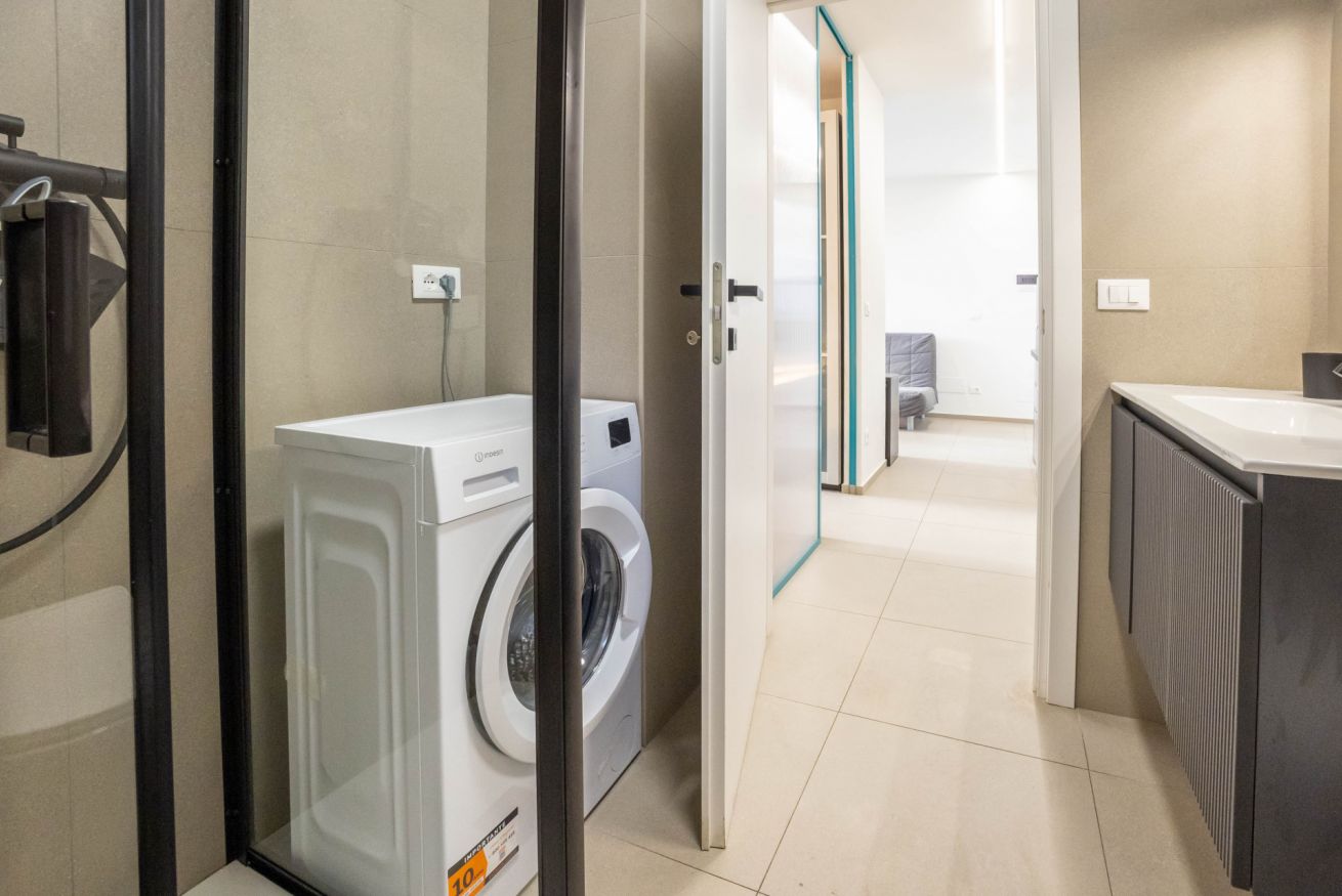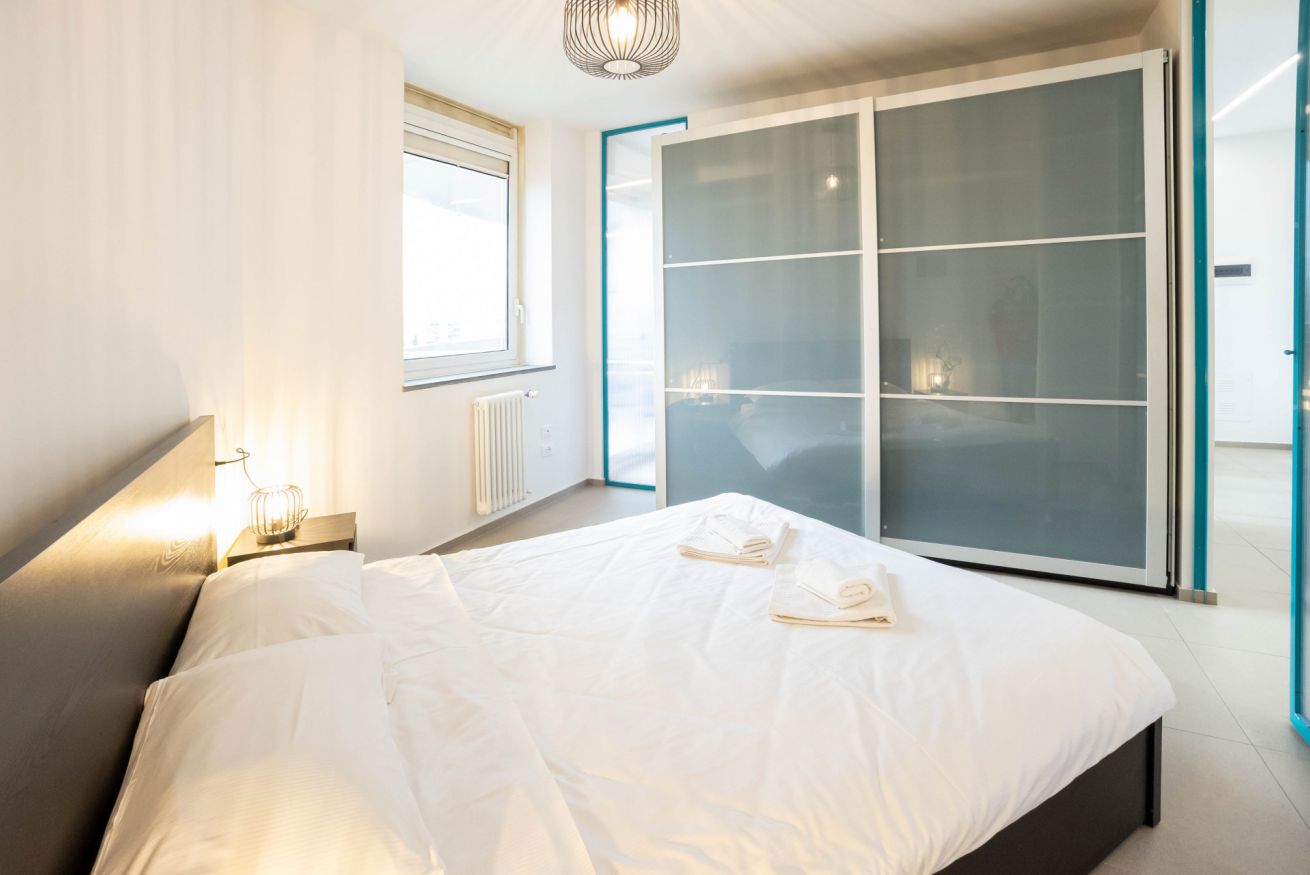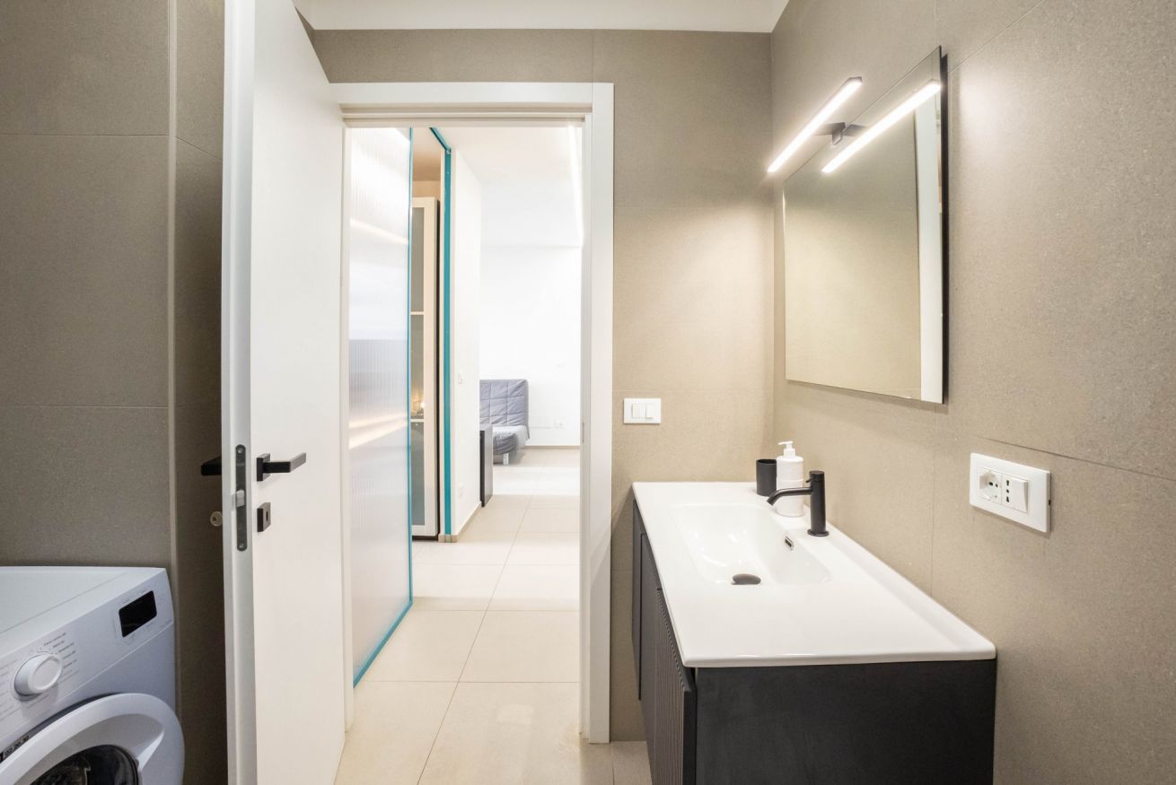 La camera da letto offre un letto matrimoniale un armadio capiente. L’appartamento dispone inoltre di un bagni dotato di vasca, lavandino bidet e lavatrice, con finiture moderne e funzionali.